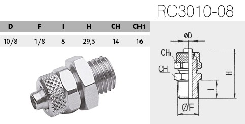 The RC3010 series of push-in fittings from GAV are available in different styles including straight female and conical, cylindrical, and metric male models. It may also be in L male conical, or an L metric, or revolving cylindrical male elbow.