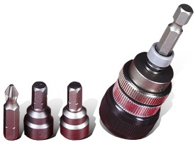 The even pilot clutch system is ideal for clutch screwdriving. It can also be used with self-drilling screws on corrugated steel materials. The even pilot bit holder features an adjustable depth stop and a free rotating ring to hold and guide screws accurately.