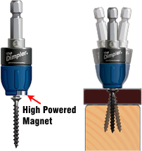 The new, narrower design countersinks screws in more angles than before…It's great for inside corners! Powerful magnet holds screws in place in any drill position. A must for drywall… prevents screws from penetrating too far and weakening the gypsum core. Three reasons for using the Dimpler:
