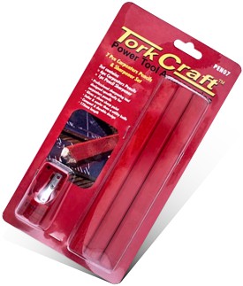 The set includes a pencil sharpener specifically designed for carpenter pencils to give a clean sharp point. The sharpener is safer and easier to use compared to a utility knife.