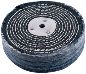 An unstitched buff is used with polishing (finishing) compound on metals. Each fold/leaf of material is approximately 1mm thick.