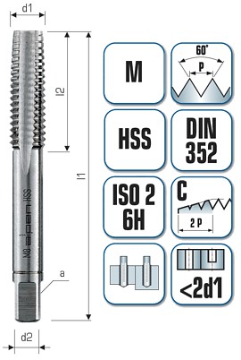 For through hole and blind hole threads, suitable for alloyed and unalloyed steels up to appr. 850 N/mm2, cast steels, malleable cast iron, brass, aluminium and copper.