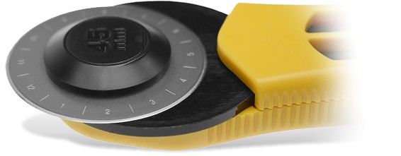 The Quick-Change Rotary Cutter has an easy blade change with just a single click. No more assembly with a washer and a nut. Just slide the locking mechanism and the blade immediately releases.