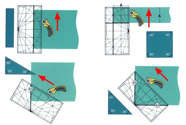 The rulers allow the user to make precise measurements and cutting angles 15 °, 30 °, 45 °, 60 ° and 90 ° during sewing and quilting applications. Accommodates both right- and left-handed users.