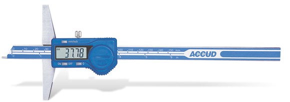 Professional electronic depth gauge by ACCUD, measuring range 0-200mm / 8' and measuring resolution 0.01mm / 0.0005'. Made of stainless steel. Equipped with a data output port. Designed to measure depths of small holes or grooves